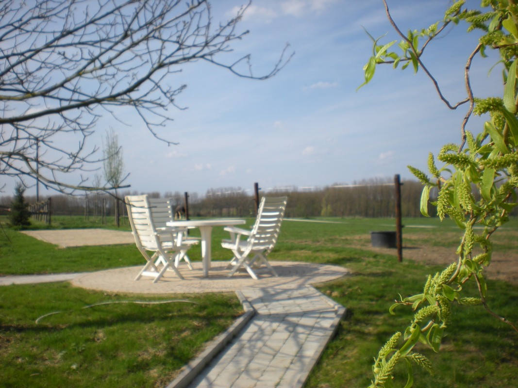 A l'arrire de la ferme, une terrasse avec une trs belle vue sur les bois vous offre un terrain de pétanque et un BBQ.